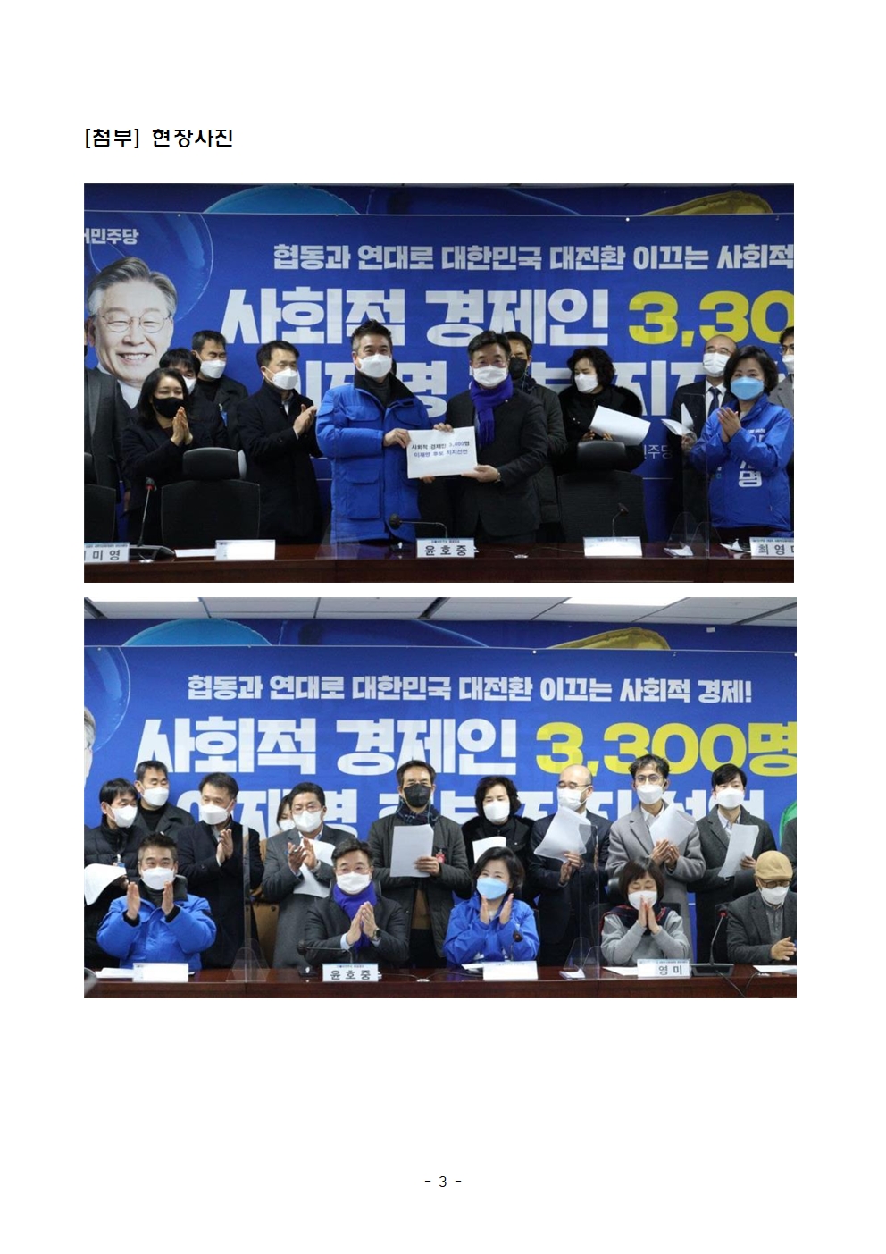 [보도자료] 더불어민주당 선대위 사회적경제위원회, 사회적경제인 3,488명 후보 지지선언