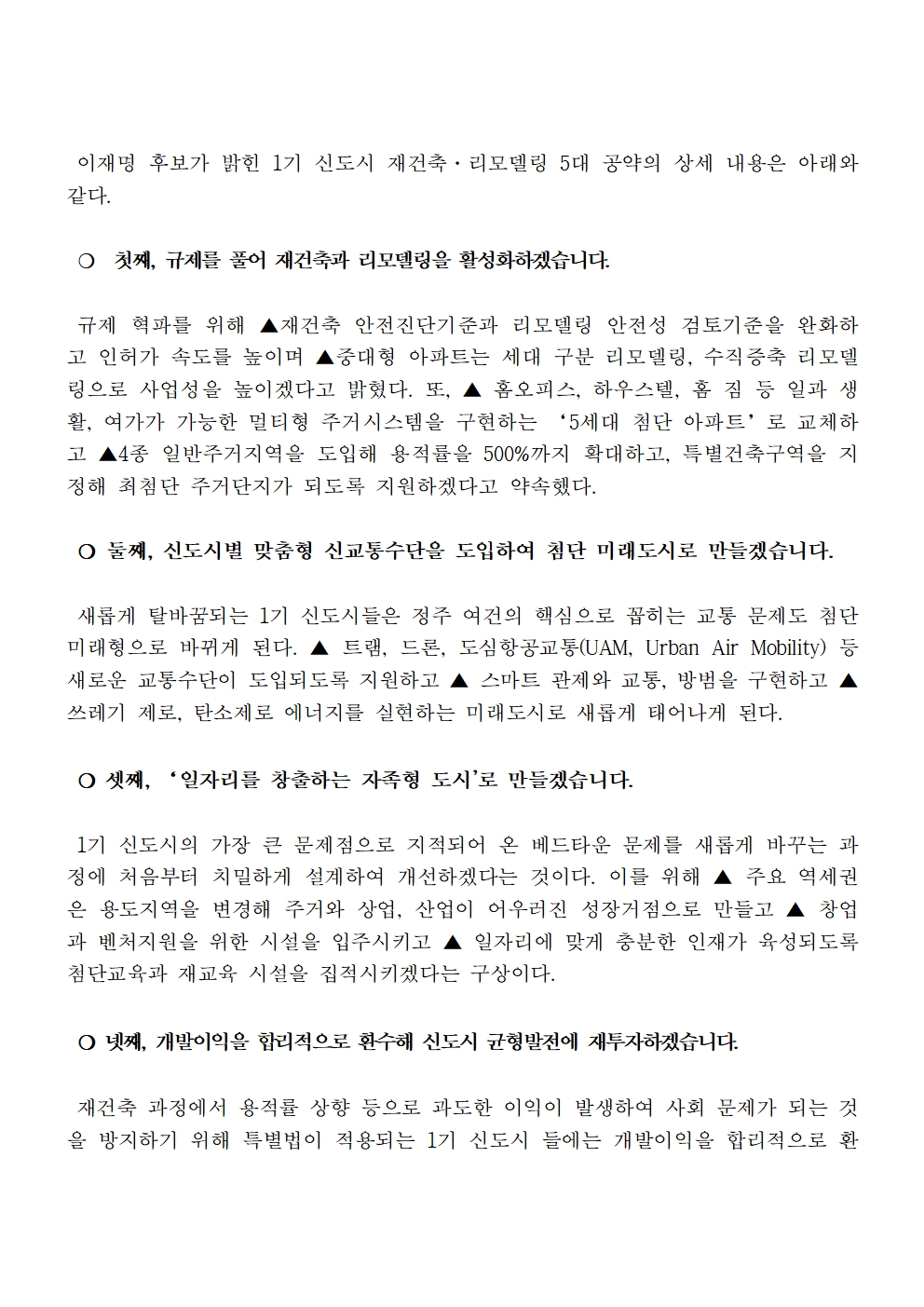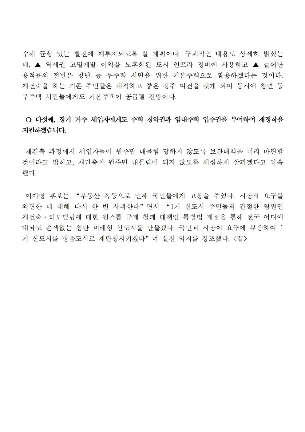 [보도자료] 더불어민주당 선대위 정책본부, 1기 신도시 재건축·리모델링 특별법 공약