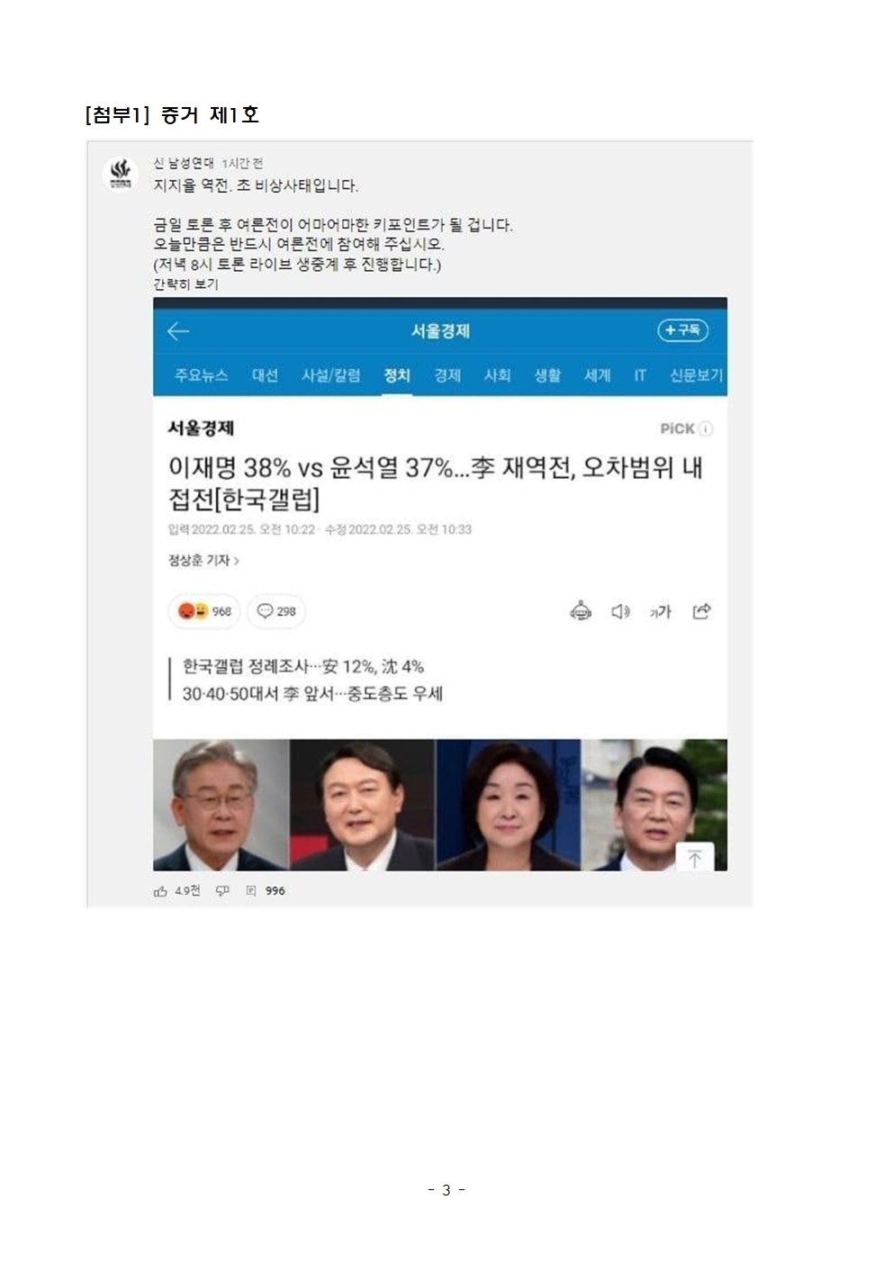 [보도자료] 더불어민주당 선대위 국민검증법률지원단, 국민의힘 댓글조작부대로 이용되는 신남성연대 오늘 대선후보 방송토론 후 댓글 조작 예고, 실행시 추가고발 예정