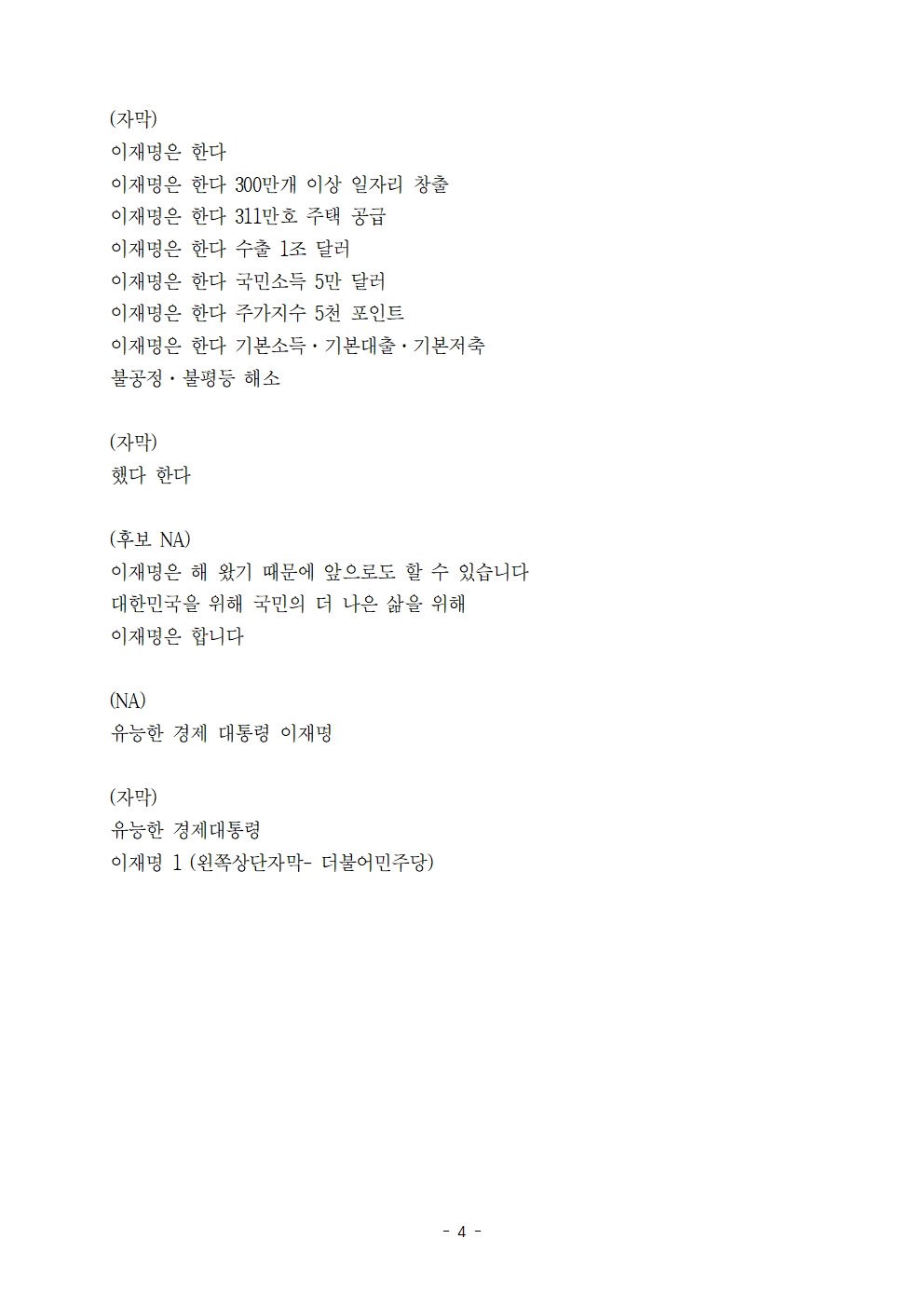 [보도자료] 더불어민주당 선대위 김영희C센터, TV광고 제5탄 '경제대통령2'편 공개