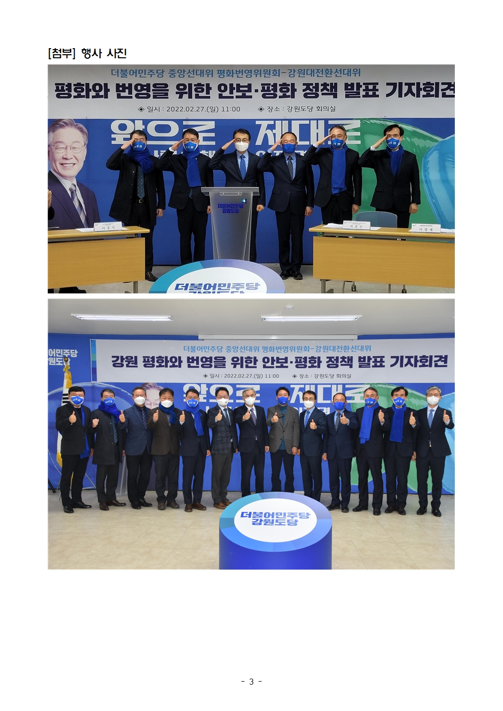 [보도자료] 더불어민주당 선대위 평화번영위원회·강원선대위, 강원 평화와 번영을 위한 안보·평화 정책 발표 기자회견