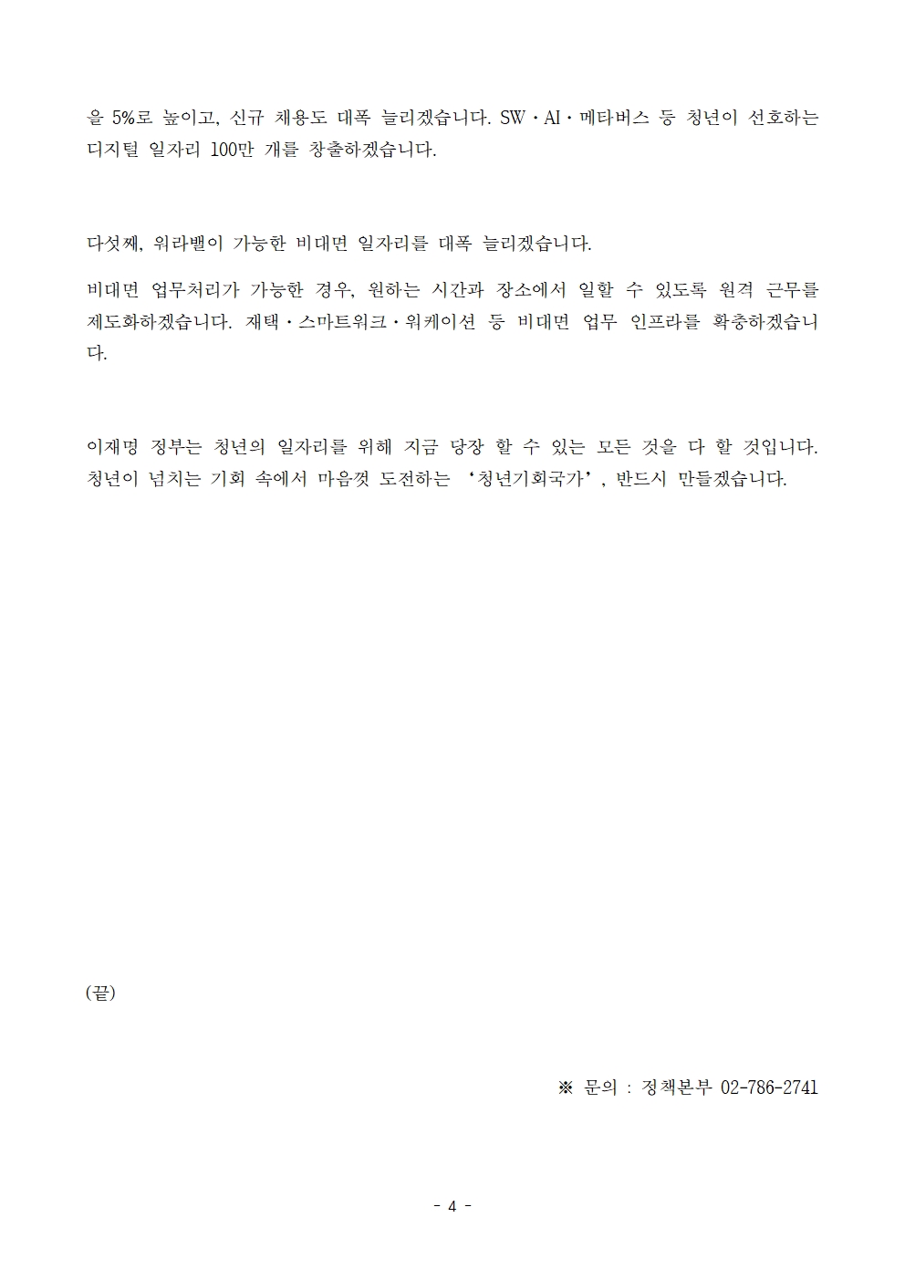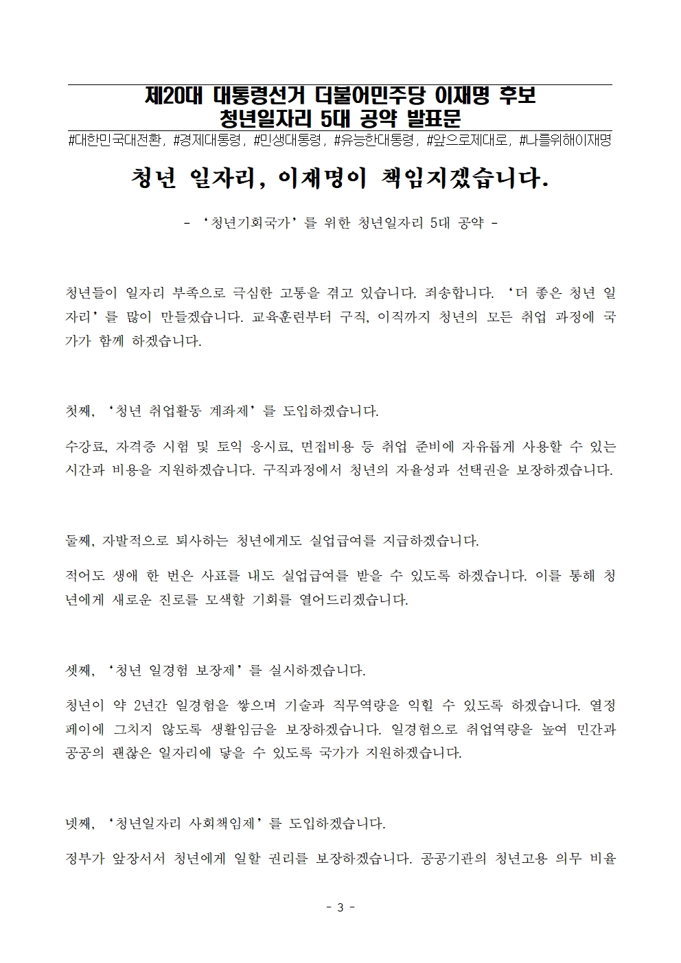 [보도자료] 더불어민주당 선대위 정책본부, ‘청년기회국가’를 위한 청년일자리 5대 공약 발표
