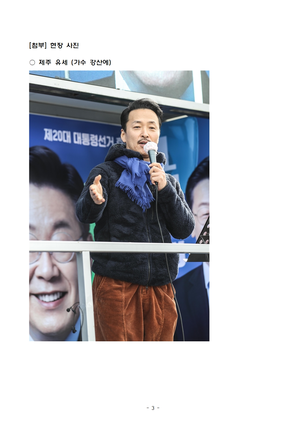 [보도자료] 더불어민주당 선대위 공보단, 가수 강산에, 배우 김하균, 제주‧부산 유세 현장 ‘깜짝 방문’, 이재명 후보를 대통령으로, 열렬한 지지 호소