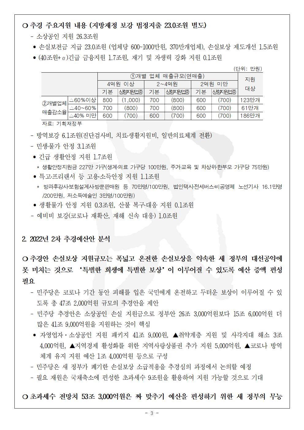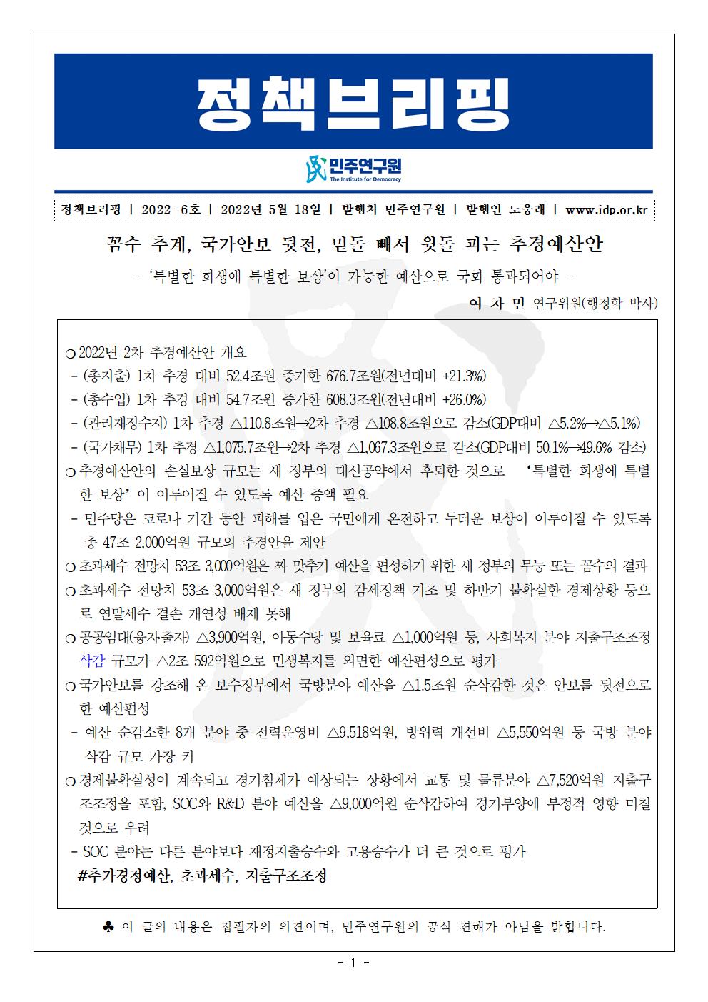 [민주연구원 정책브리핑] 2022년 2차 추경예산안 분석