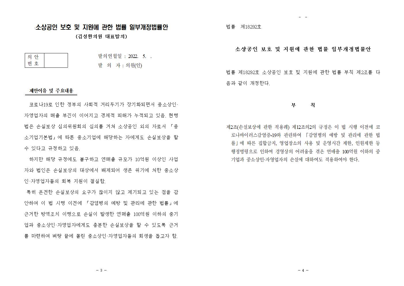 [보도자료] 더불어민주당 정책위원회, 손실보상 소급적용! 보상대상 확대! 소상공인법 개정안 발의