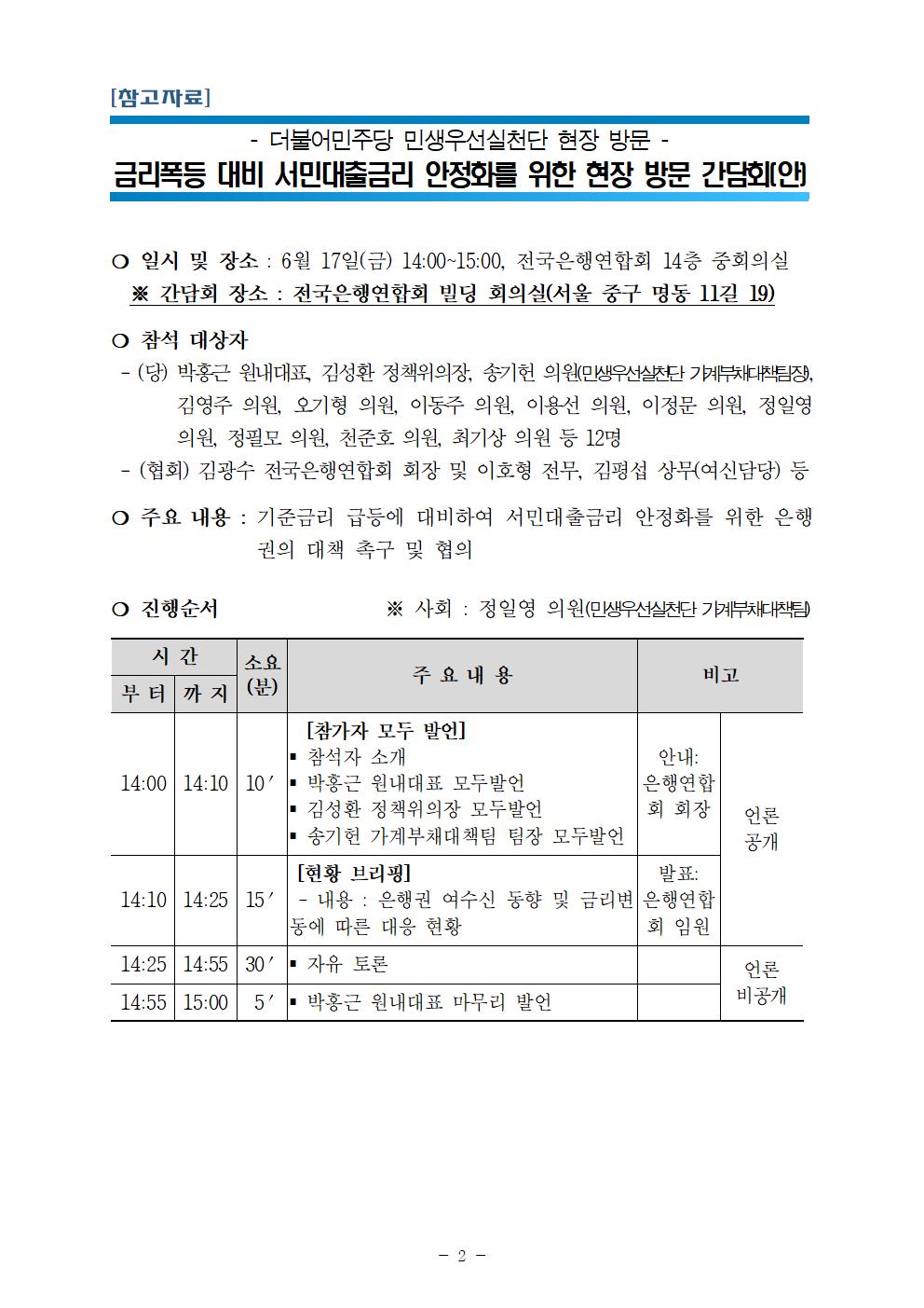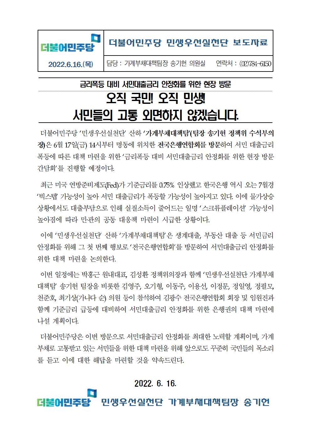 [보도자료] 더불어민주당 민생우선실천단, 금리폭등 대비 서민대출금리 안정화를 위한 현장 방문