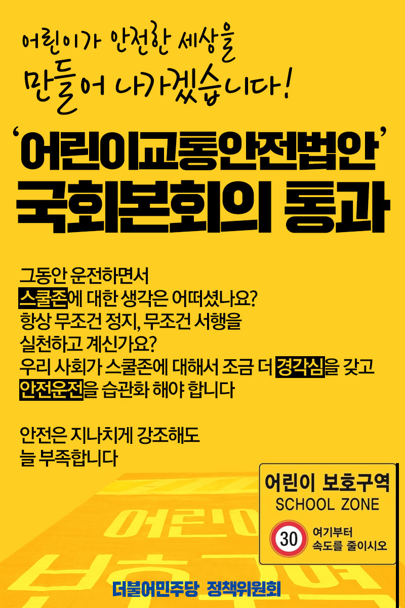 어린이교통안전법안 국회본회의 통과! - 어린이가 안전한 세상을 만들어가겠습니다 -