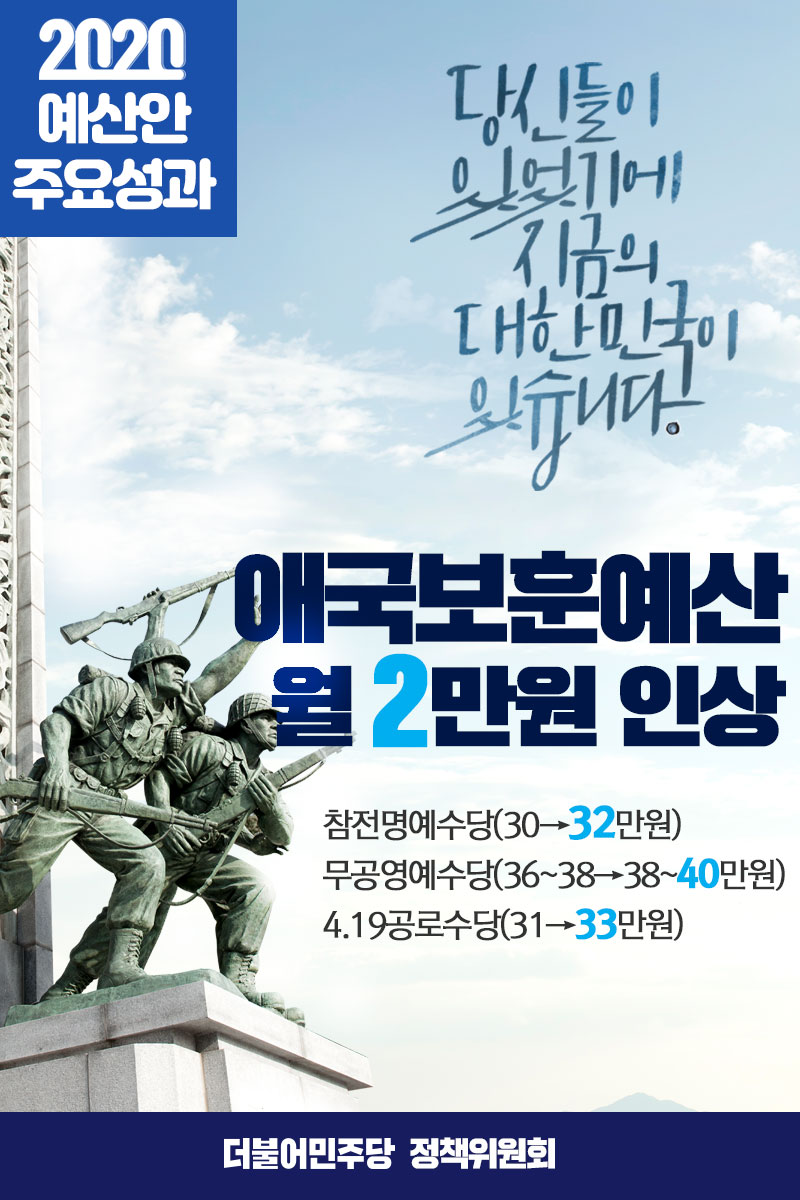 2020 예산안 주요성과 : 애국보훈예산 월 2만원 인상!