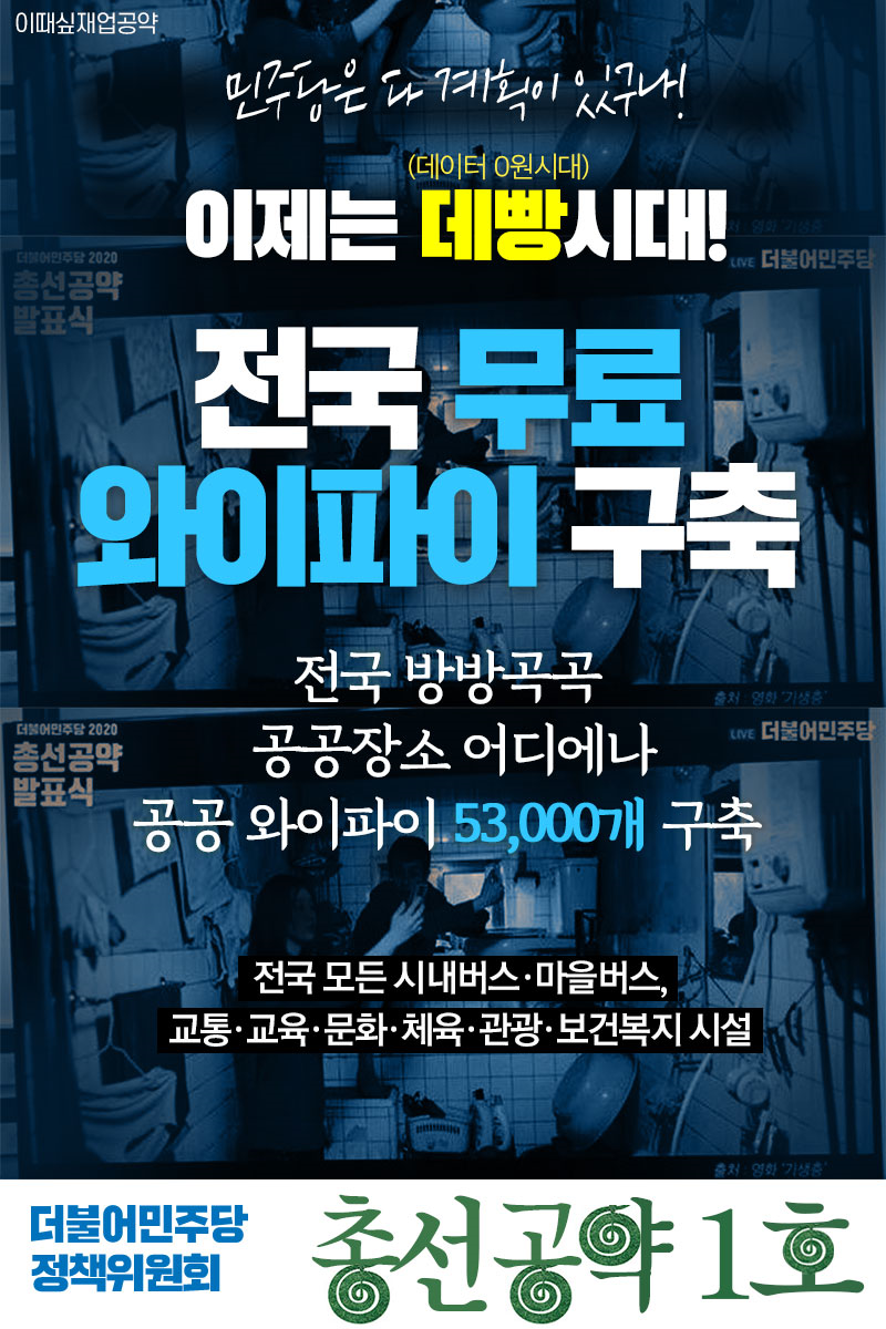 사진설명 : 봉준호 감독의 오스카 수상작 영화 [기생충] 중, 와이파이를 찾는 가족의 모습 스틸샷