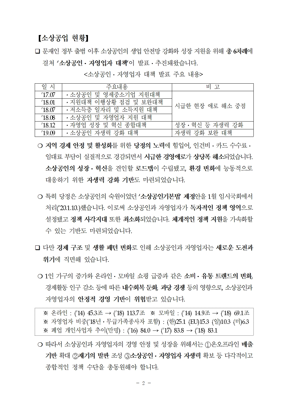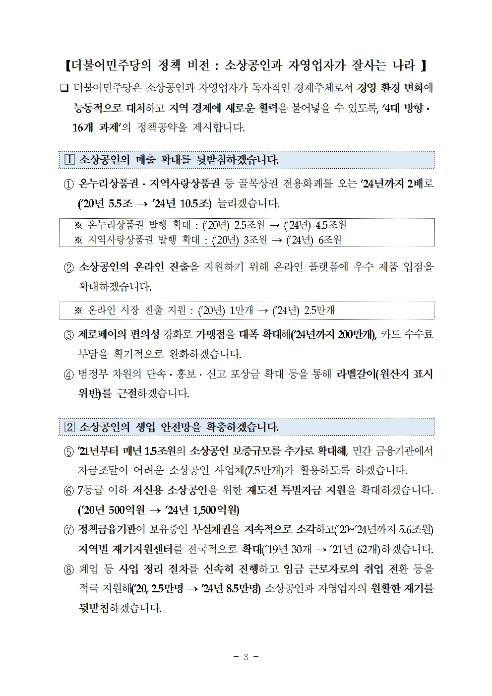 [총선공약] 소상공인과 자영업자가 잘사는 나라! 민생활력 제고 총선공약