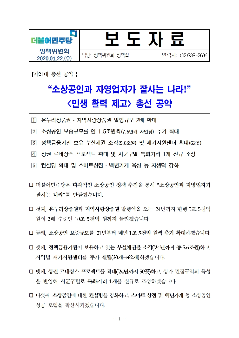 200122_보도자료_소상공인_자영업자_총선공약.hwp