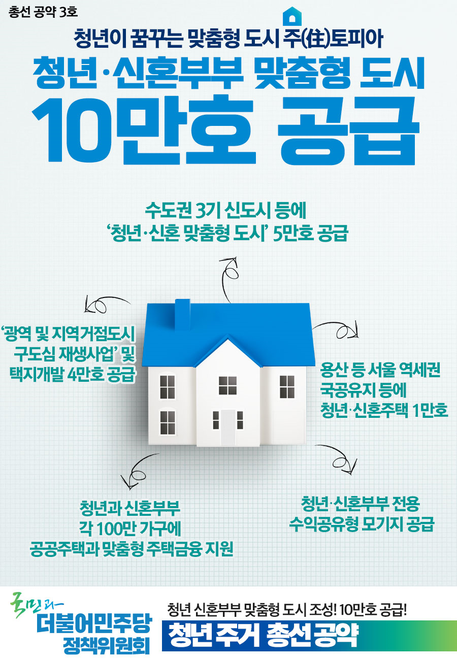 [총선공약] 청년이 꿈꾸는 맞춤형 도시 주(住)토피아! 청년·신혼부부 맞춤형 도시 10만호 공급!