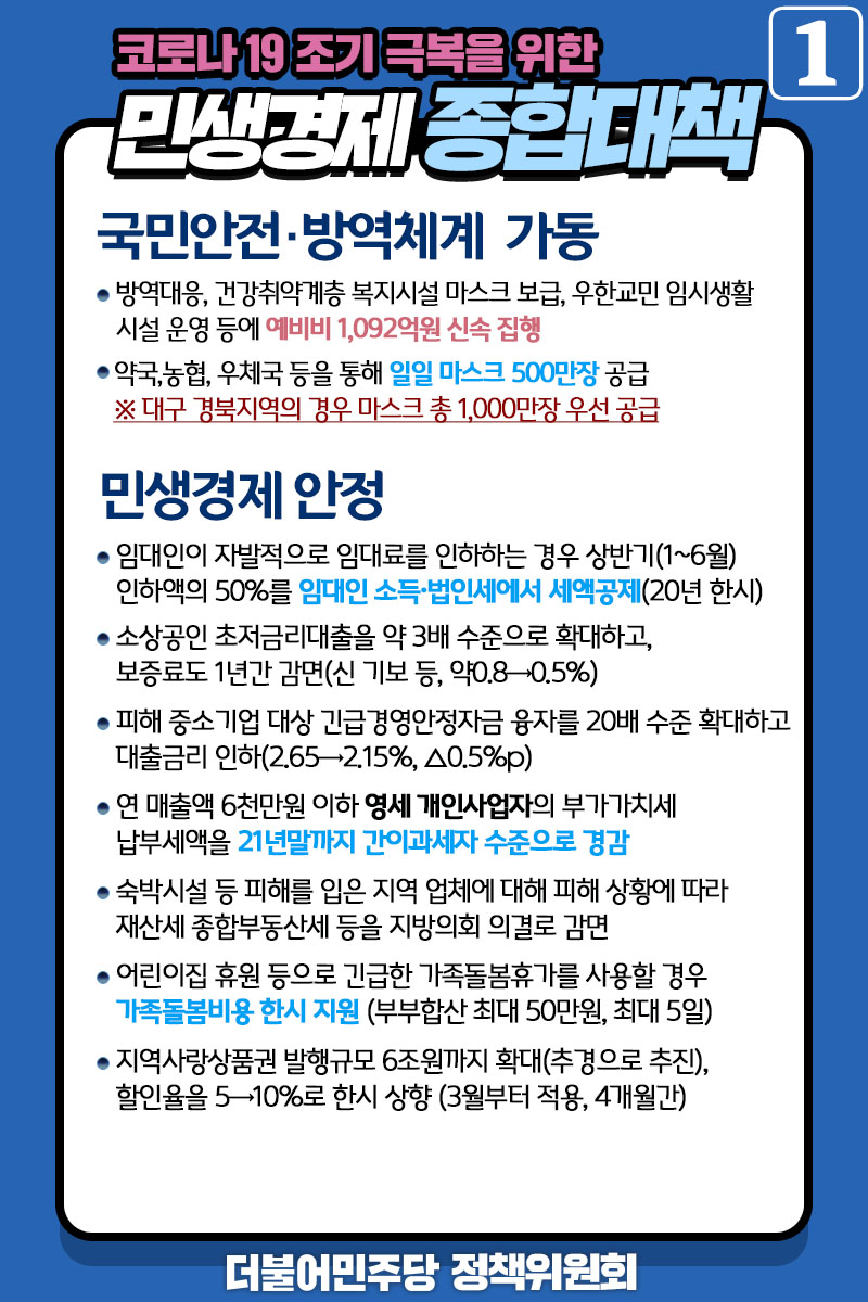 코로나19 조기 극복을 위한 민생경제 종합대책