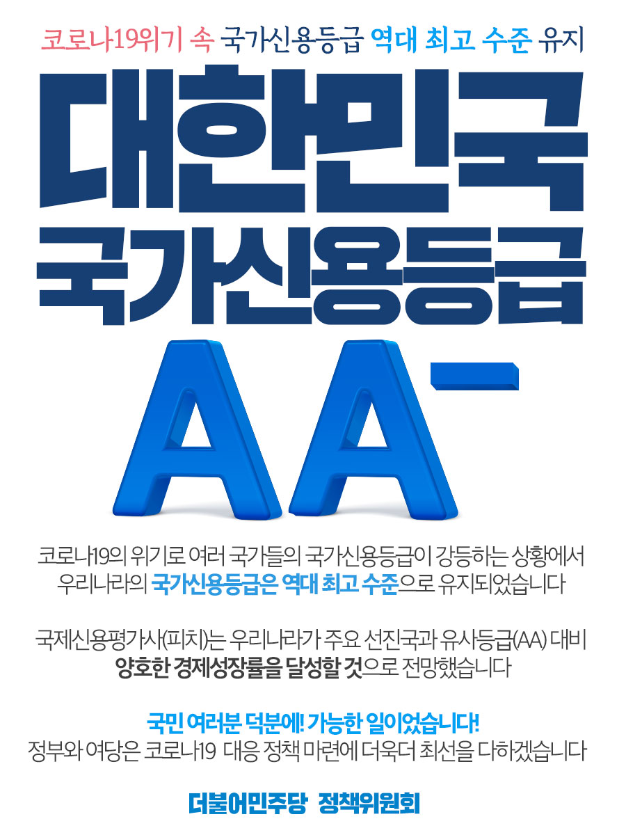 대한민국 국가신용등급 AA- , 코로나19 위기 속 국가신용등급 역대 최고수준 유지!