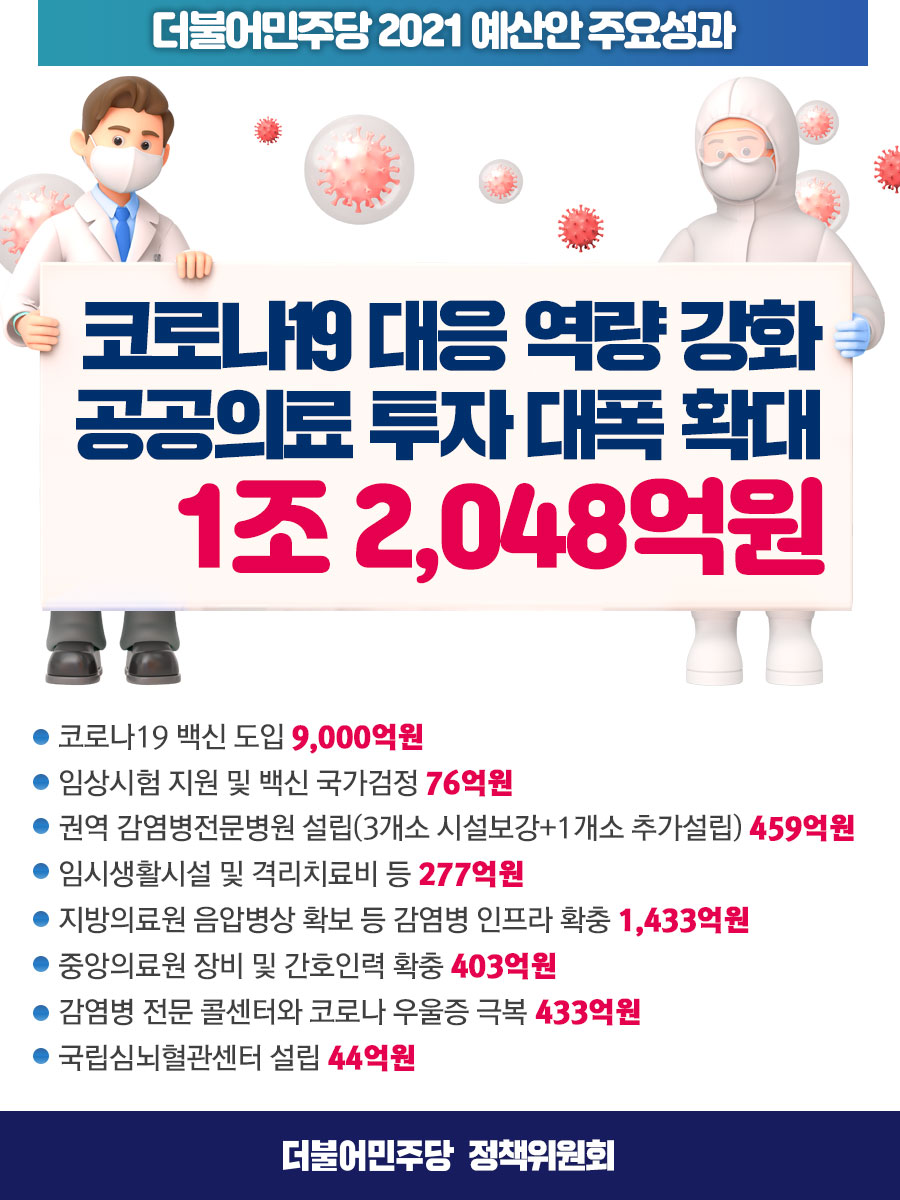 2021예산성과] 코로나19 대응 역량 강화 공공의료 투자 대폭 확대 1조 2,048억