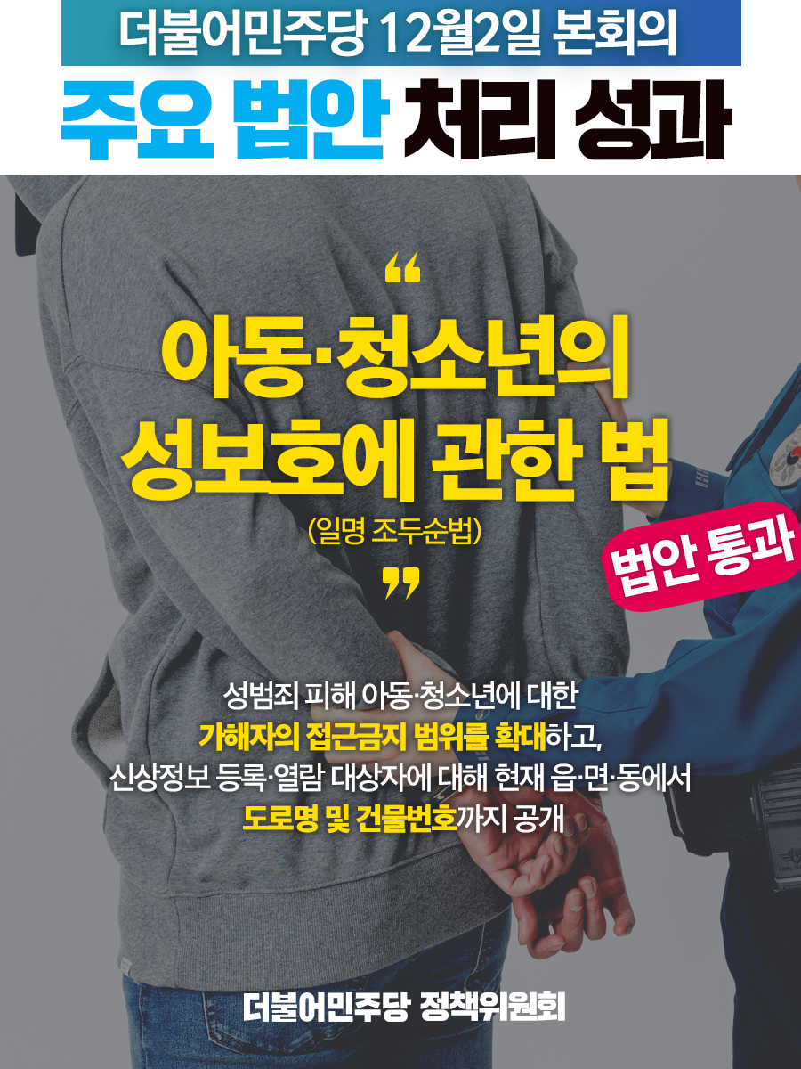 [12월 2일] 주요 법안 처리 성과 "아동청소년의 성보호에 관한 법"