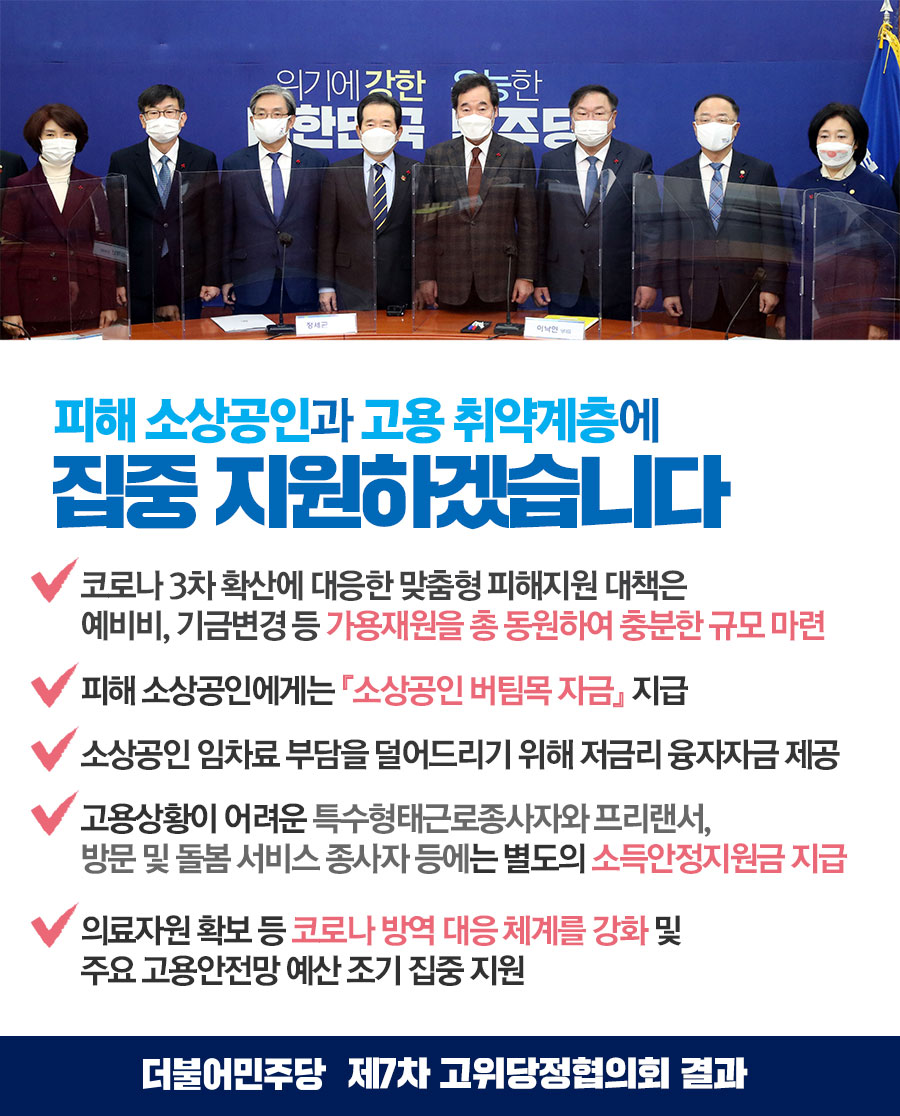 피해소상공인과 고용취약계층에 집중하겠습니다