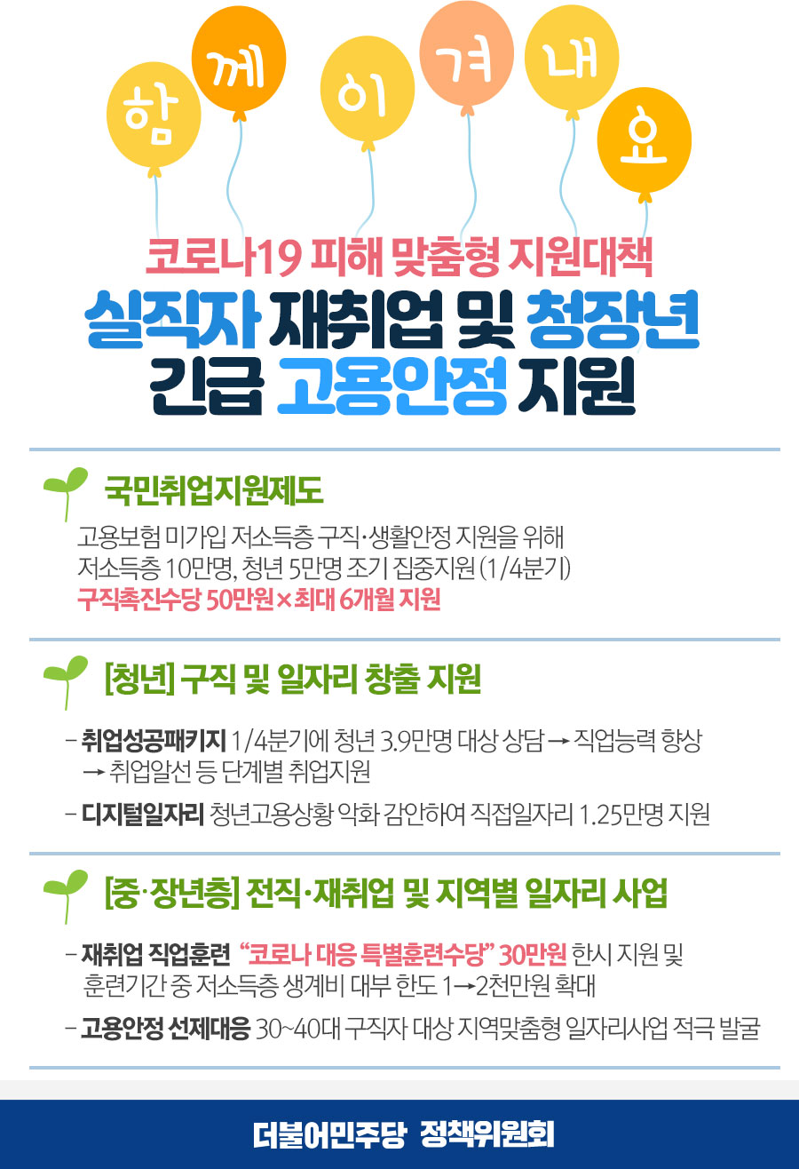 코로나19 피해 맞춤형 지원대책 '실직자 재취업 및 청장년 긴급 고용안전 지원'