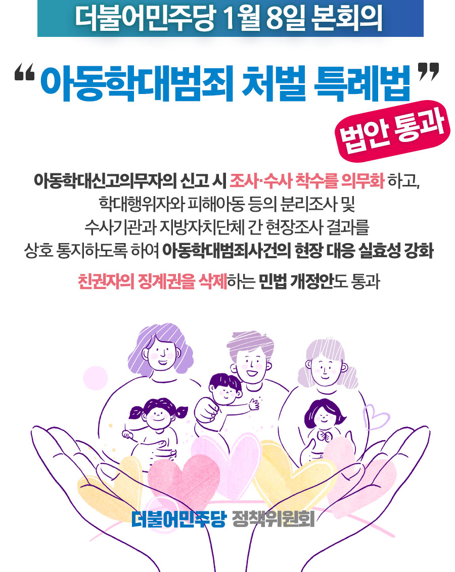 1월 8일 본회의 '아동학대범죄 처벌 특례법' 법안통과!