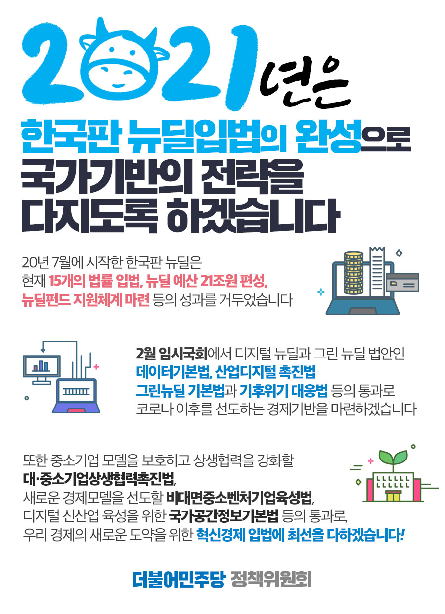 한국판 뉴딜입법의 완성으로 국가기반의 전략을 다지도록 하겠습니다