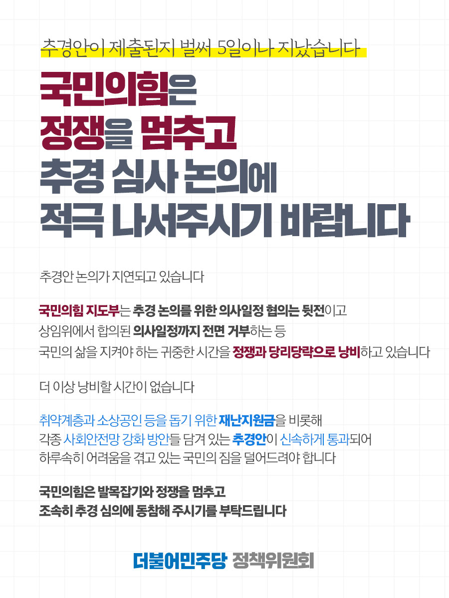 국민의 힘은 정쟁을 멈추고 추경 심사 논의에 적극 나서주시기 바랍니다