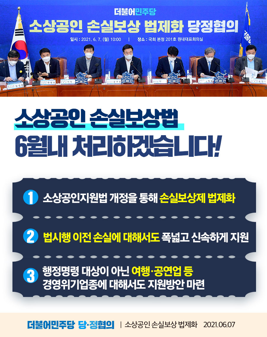 소상공인 손실보상법, 6월 내 처리하겠습니다!