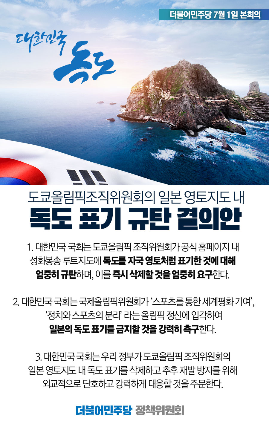 도쿄올림픽조직위원회의 일본 영토지도 내 독도 표기 규탄 결의안!
