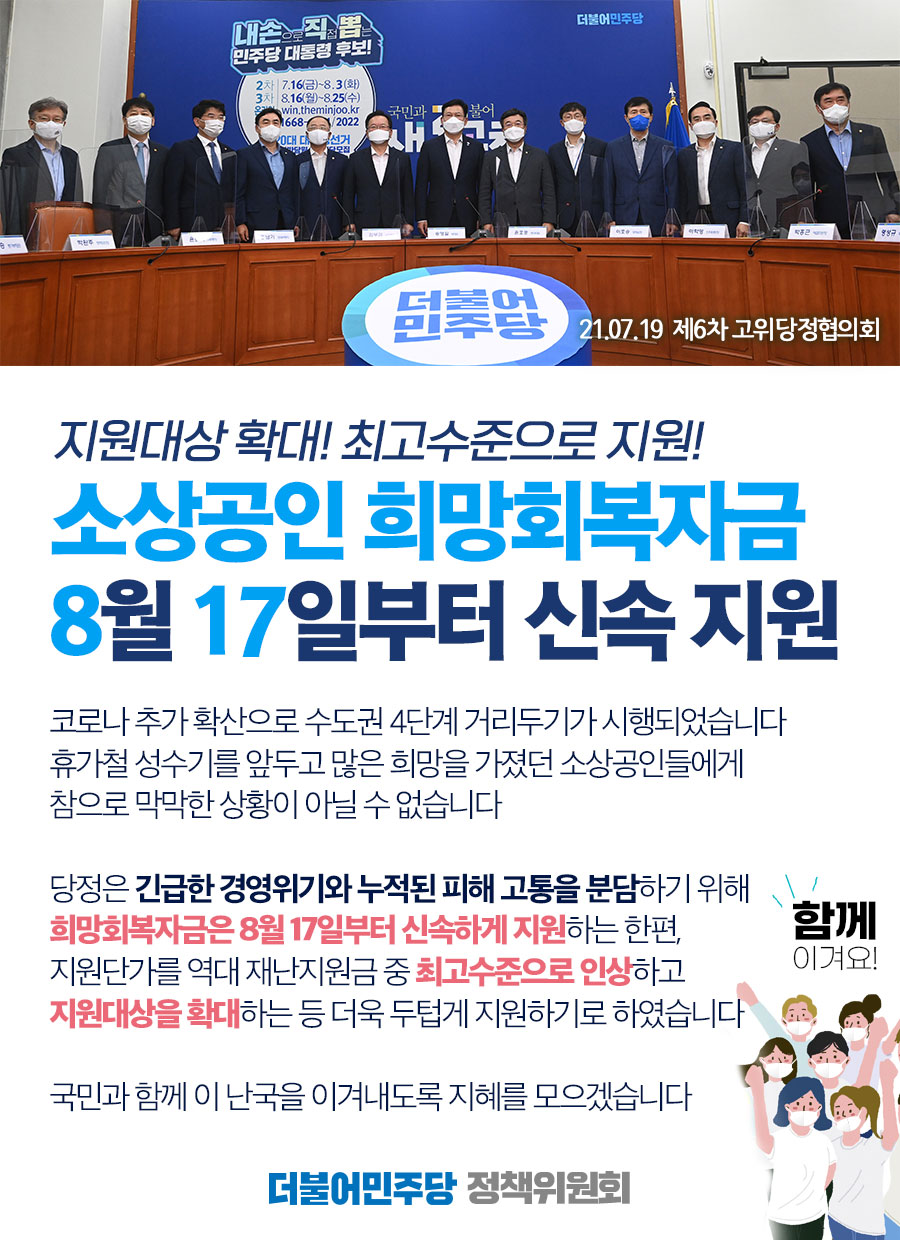 소상공인 희망회복자금 8월 17일부터 신속 지원!
