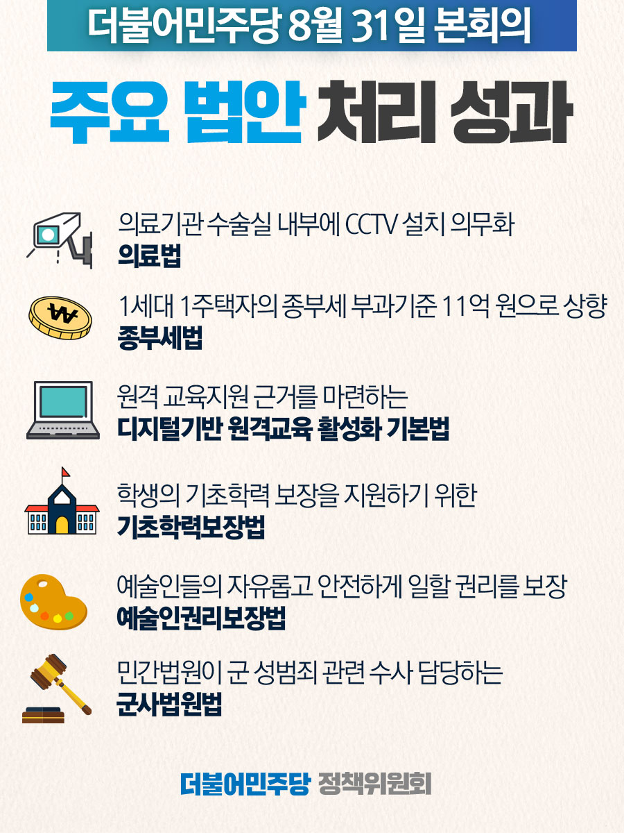 [8월 31일 본회의] 주요 법안 처리 성과!