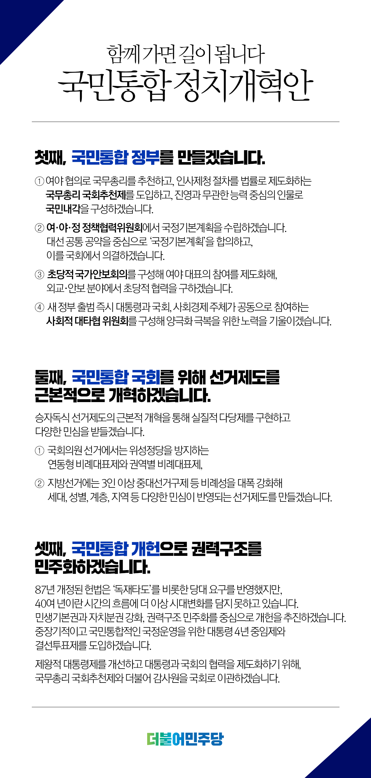 국민통합 정치개혁안 "함께 가면 길이 됩니다"