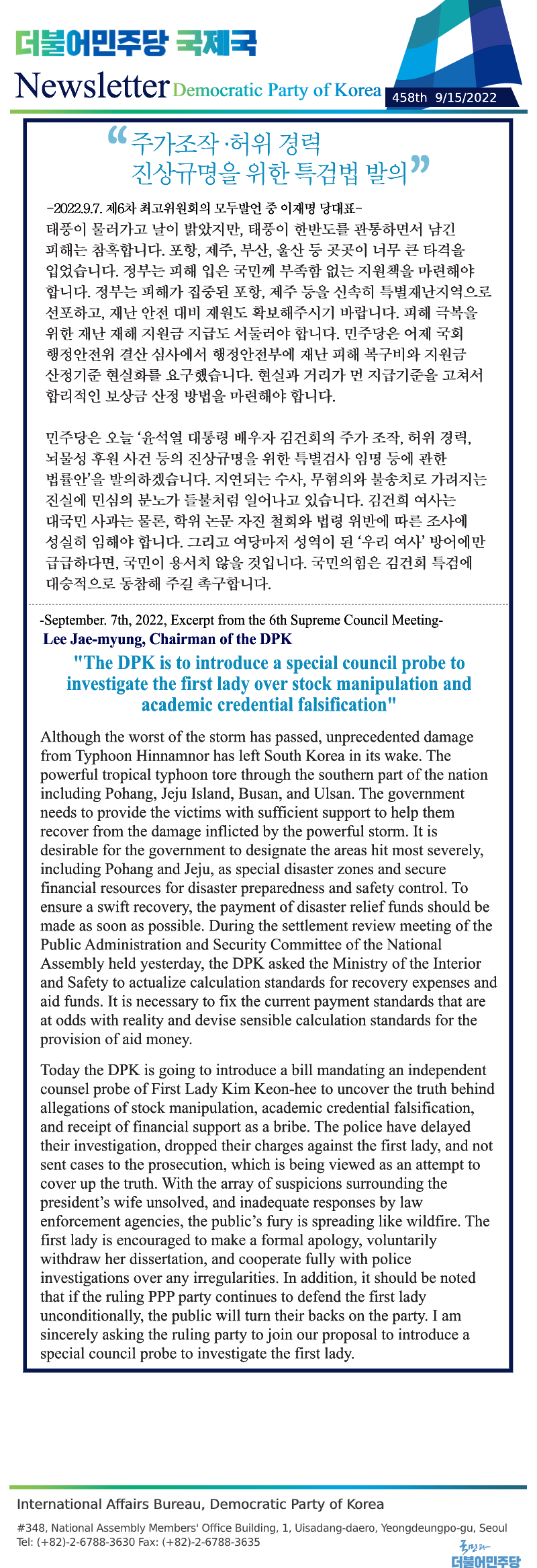 [459th Newsletter]Excerpt from the 7th Supreme Council Meeting
