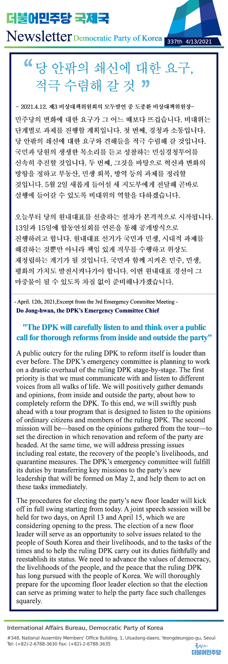 [336th Newsletter] Press Conference on the April 7 By-Elections
