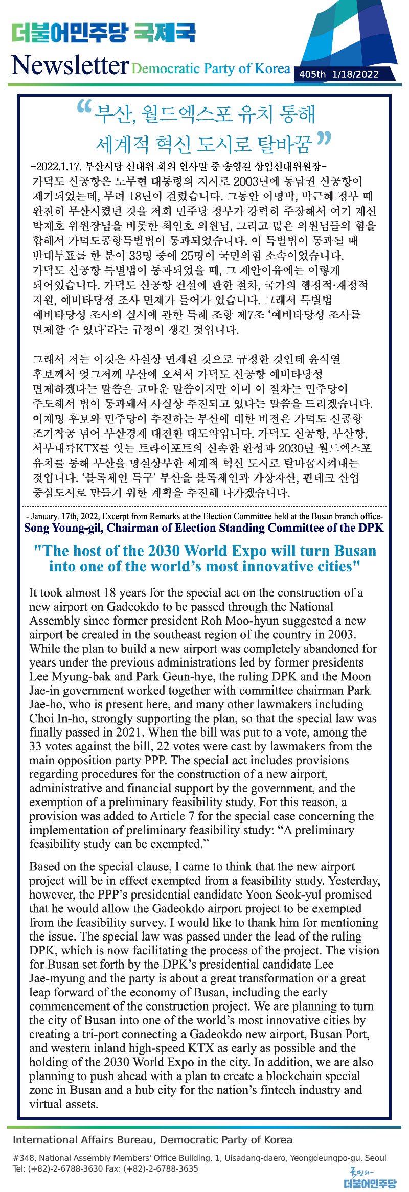 [405th Newsletter]Excerpt from Remarks at the Election Committee held at the Busan branch office