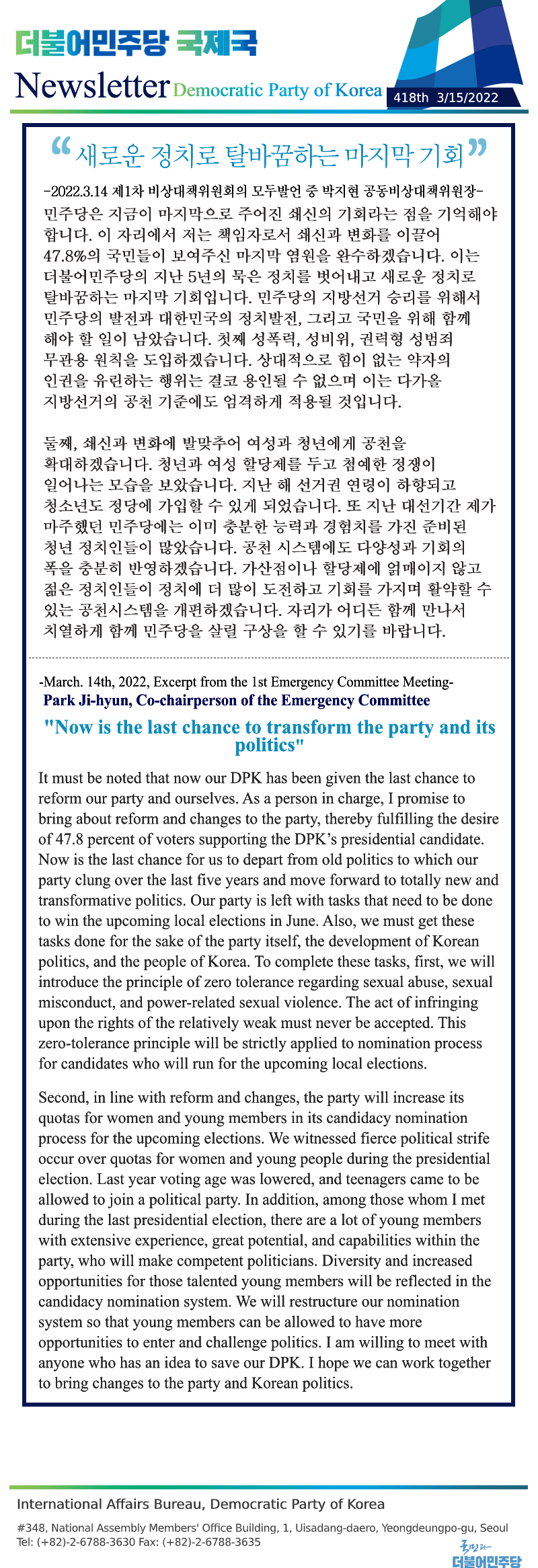 [417th Newsletter]Excerpt from the 16th Central Election Committee Meeting