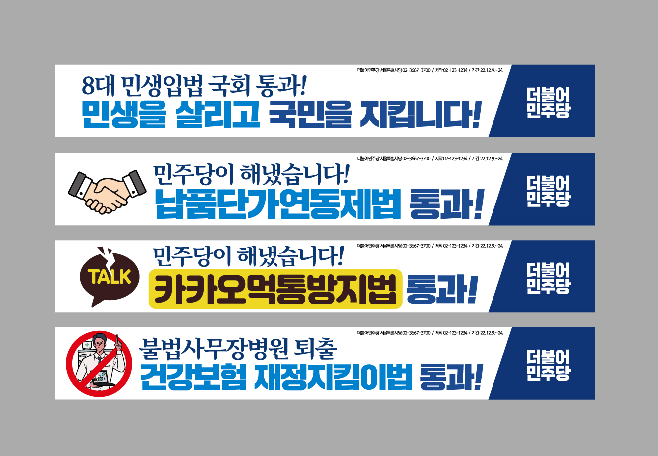 [현수막] 8대 민생입법 국회통과 정책성과 홍보 (11회차)