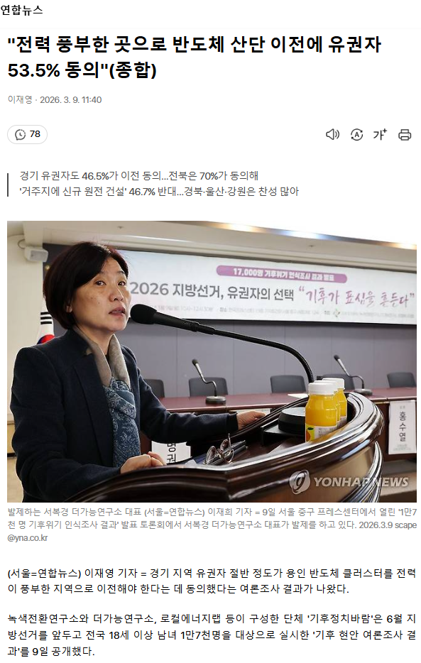"전력 풍부한 곳으로 반도체 산단 이전에 유권자 53.5% 동의" (종합)