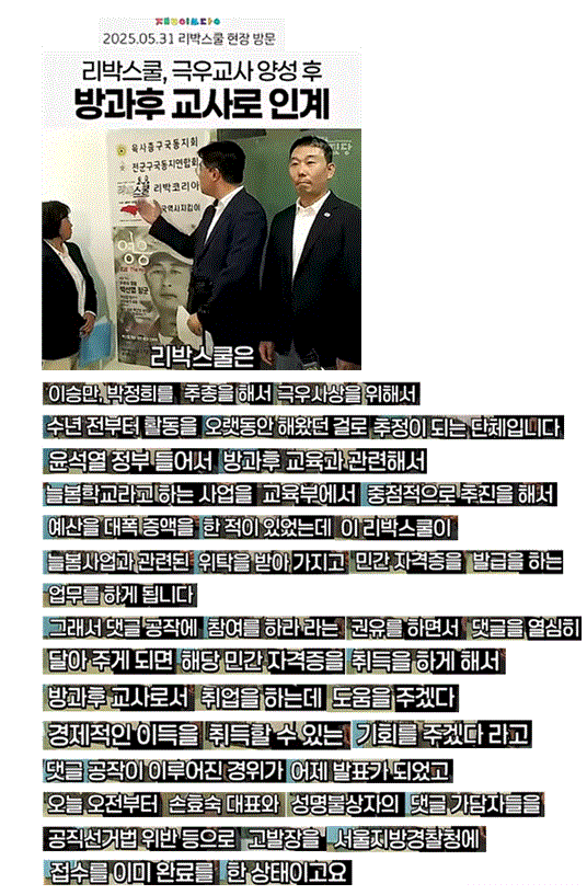 "극우교사 양성 후 방과후 교사로 취업" 리박스쿨 현장 기습 방문한 민주당