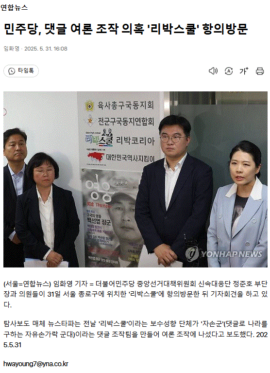 민주당 “댓글공작 리박스쿨 대표, 김문수 후보와 친분 있다고 말해··· 관계 밝혀야”ㅡ 2018년부터 인연