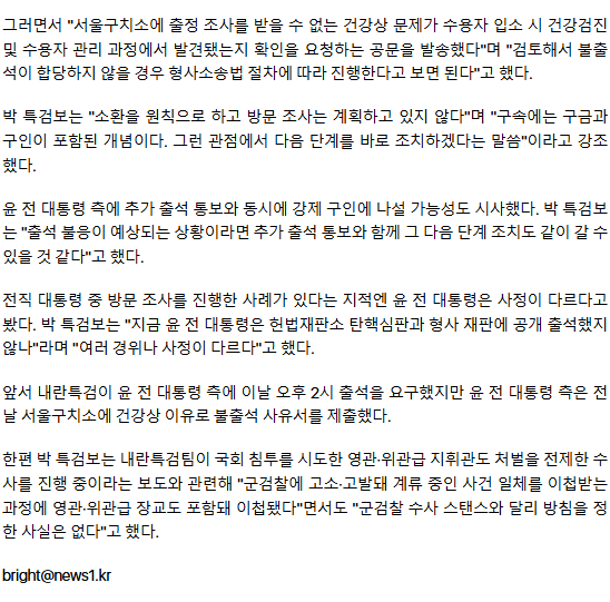 尹, 건강상 이유 소환조사 불응… 특검 "납득 안되면 다음 조치" (종합)