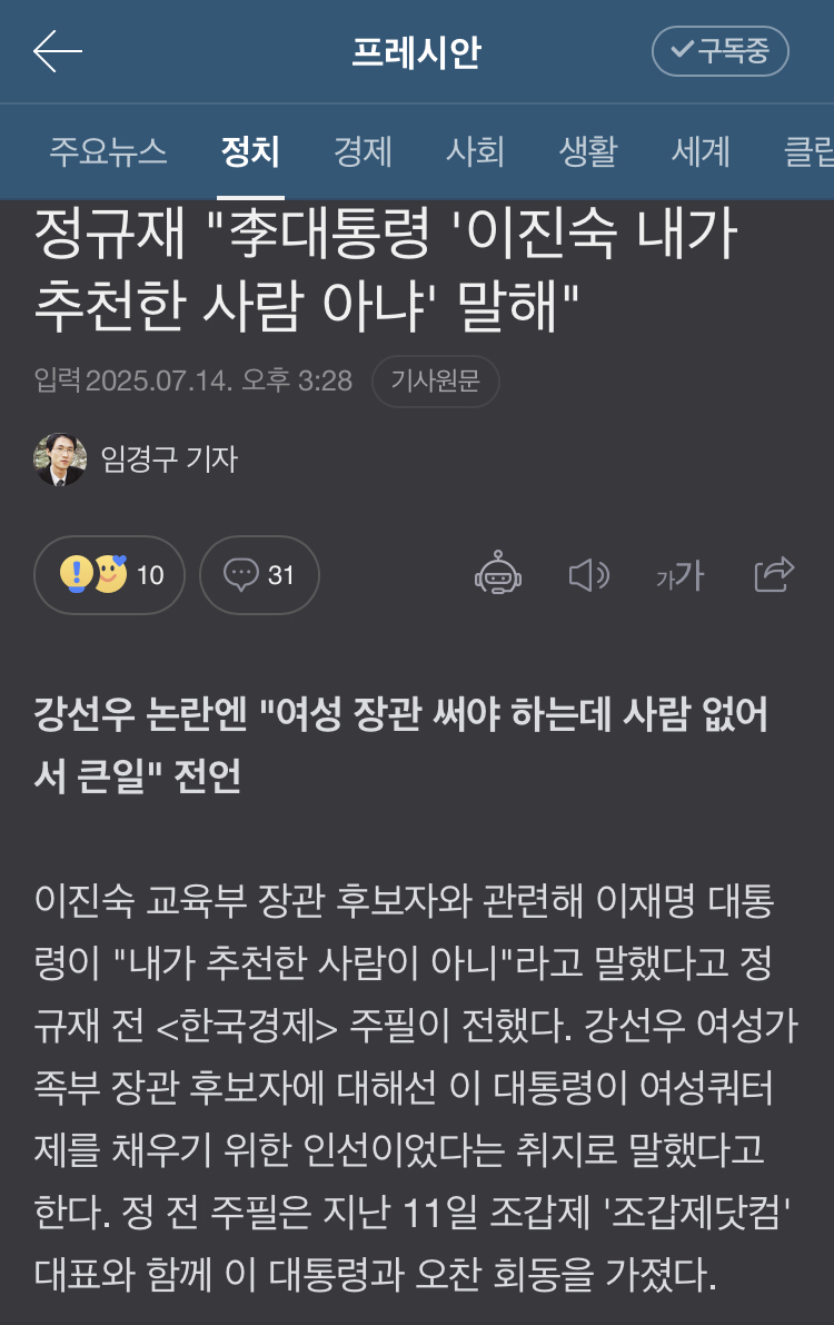 그런데 어제 여성계의 강선우사퇴압박 기사를 보니