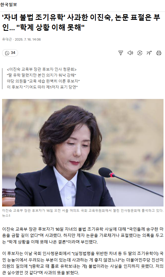 '자녀 불법 조기유학' 사과한 이진숙, 논문 표절은 부인… "학계 상황 이해 못해"