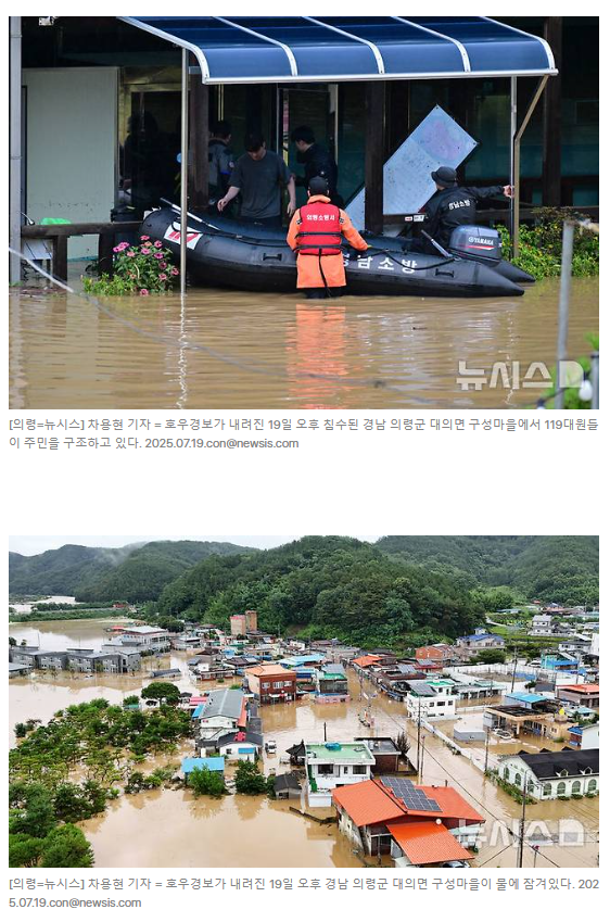 물에 잠긴 의령 구성마을… 119구조대 고립 주민들 안전하게 구조 [뉴시스Pic]