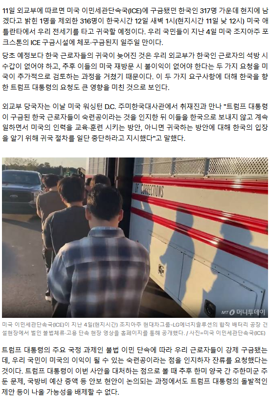美구금 한국인 317명 중 1명 빼고 귀국… 트럼프 한마디에 늦춰진 석방 ㅡ 1명은 미국 영주권자