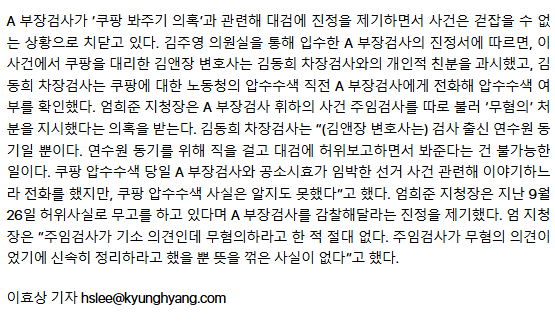 엄희준 검사가 담당 검사에게 쿠팡 무혐의 압력을 가해서