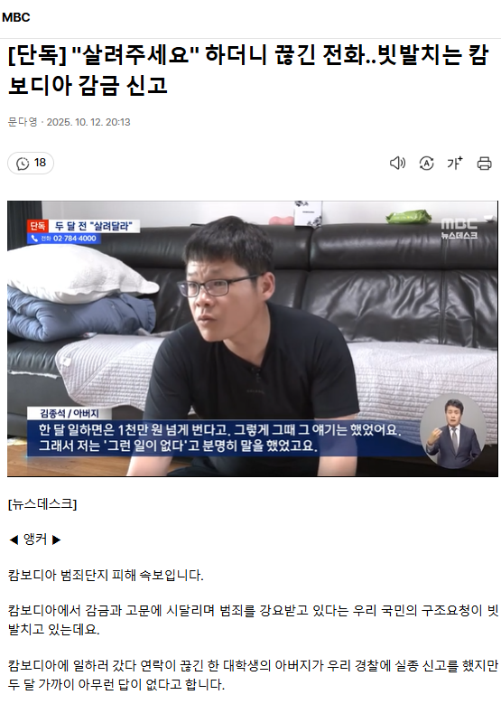[단독] "살려주세요" 하더니 끊긴 전화‥ 빗발치는 캄보디아 감금 신고