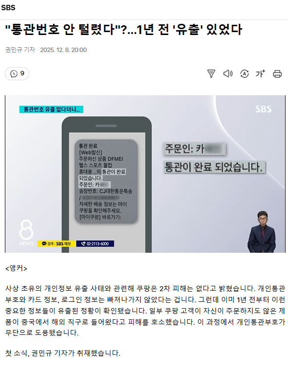 "통관번호 안 털렸다"?… 1년 전 '유출' 있었다