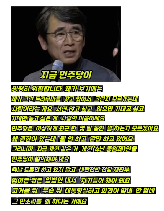 정국이 답답할 때는 역쉬, 사이다가. 유시민 ㅡ 민주당 굉장히 위험합니다