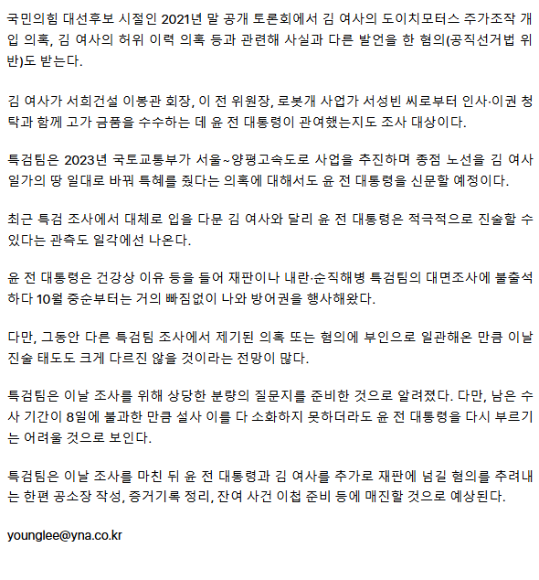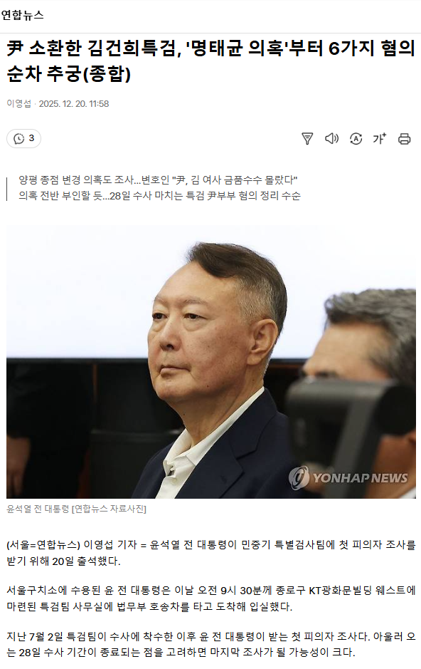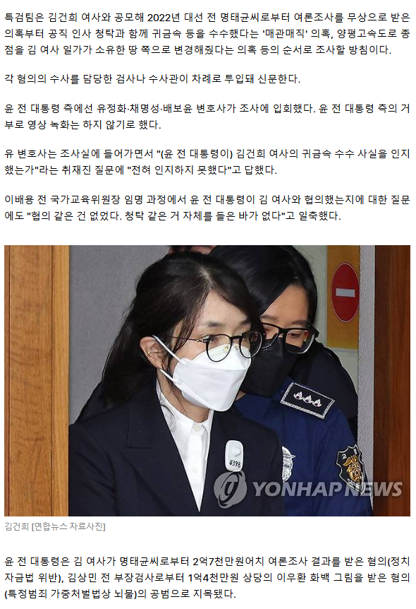 尹 소환한 김건희특검, '명태균 의혹'부터 6가지 혐의 순차 추궁 (종합) ㅡ거짓말 잘하는 윤가넘