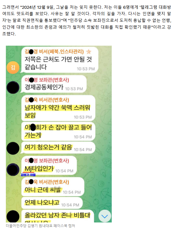 대화방에서 "계엄을 하려면 제대로 국회의원도 다 잡아가고" 그리고 김민석의원을 비하하는 발언도 있는것 같은데 이걸 보고도 똥개념 전직보좌관들을 옹호하고 싶으세요?