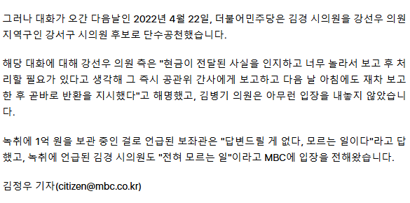 아 씨 뭐같은 김병기 안짤라내니 결국 강선우 1억까지...